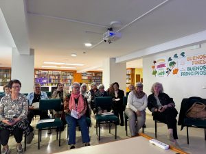 Abre la jornada la presidenta Bienvenida, acompañada por la secretaria Ana y la tesorera Lola.