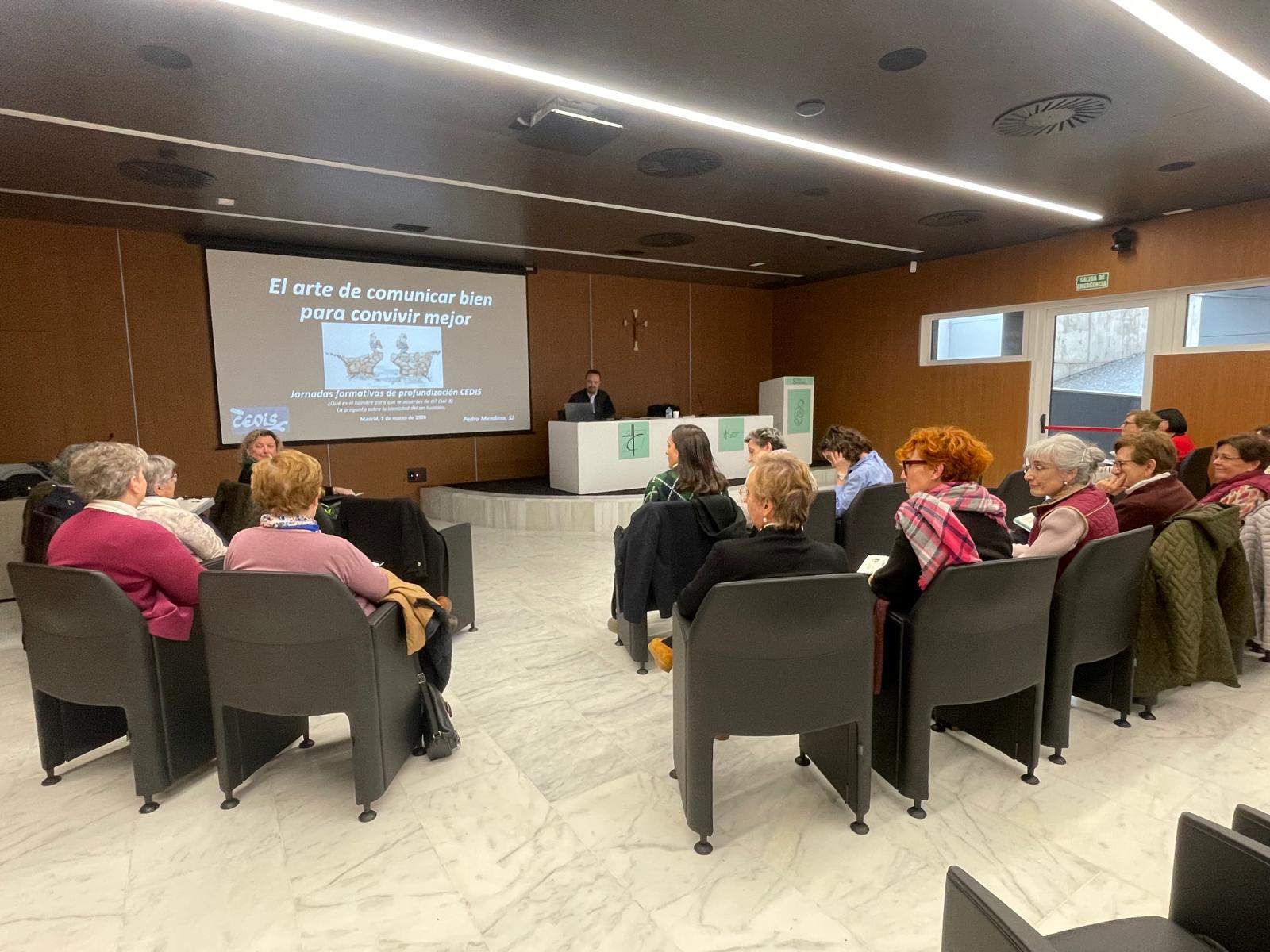 El encuentro estuvo coordinado por las Comisión de Vocaciones y Presencia en el mundo. El sábado comenzó con una oración que nos hizo conscientes de Quién nos convoca y reúne. A continuación, la presidenta de CEDIS, Carolina Sánchez, nos introdujo en el porqué del proyecto trienal de formación articulado en torno al interrogante que plantea el Salmo 8: “¿Qué es el hombre para que te acuerdes de él?”. Nos recordó lo vivido en la Jornada Académica del pasado mes de noviembre de 2025, sintetizando lo expuesto por los tres ponentes que nos acompañaron. Nos invitaba a pararnos, a mirar lo que florece en los márgenes, a escrutar los horizontes de nuestra vida y nuestro tiempo, en atenta vigilancia, para reconocer las huellas de Dios en el mundo y en la historia. Somos llamadas a adentrarnos y permanecer en los gozos y fatigas de nuestros contemporáneos, a dialogar con respeto y humildad sobre todas las realidades. Sabemos que no tenemos siempre una respuesta para cada cuestión, pero nos asiste el Espíritu Santo, caminamos de la mano de Jesús Maestro, para guiarnos con la sabiduría del discernimiento y sostenernos en las dificultades y fracturas que nos amenazan: con el mundo, con los demás y con nosotros mismos.